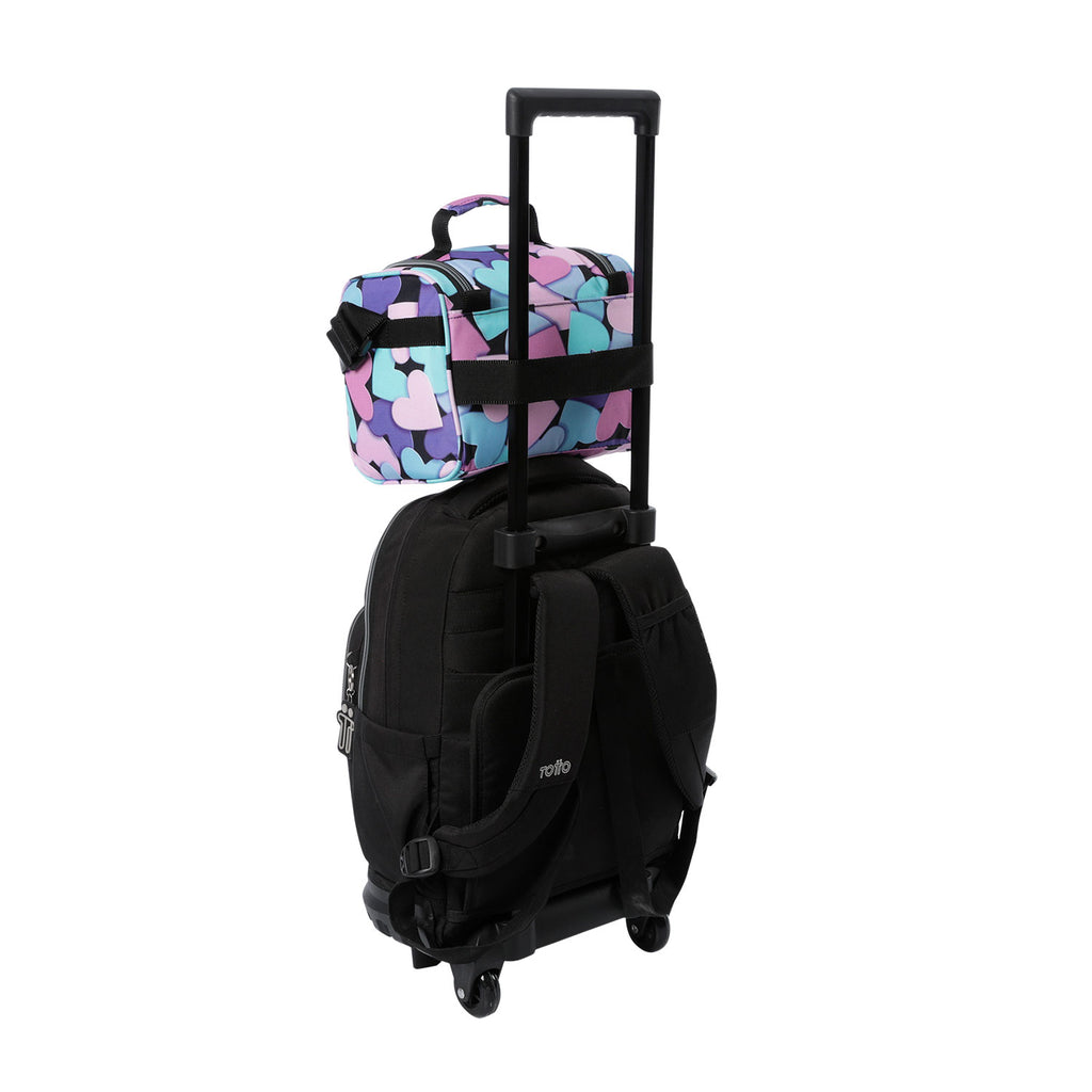 ¡Mejora tu rutina diaria con la lonchera Pizarra! Está diseñada con aislamiento térmico para mantener la temperatura hasta por 5 horas, incluye un bolsillo interno en malla y un bolsillo auxiliar, perfectos para organizar tus pertenencias. Su exterior es repelente a líquidos y fácil de limpiar, ideal para el uso diario. Confeccionada con materiales reciclados y equipada con correas ajustables y pasador para sistema de ruedas.