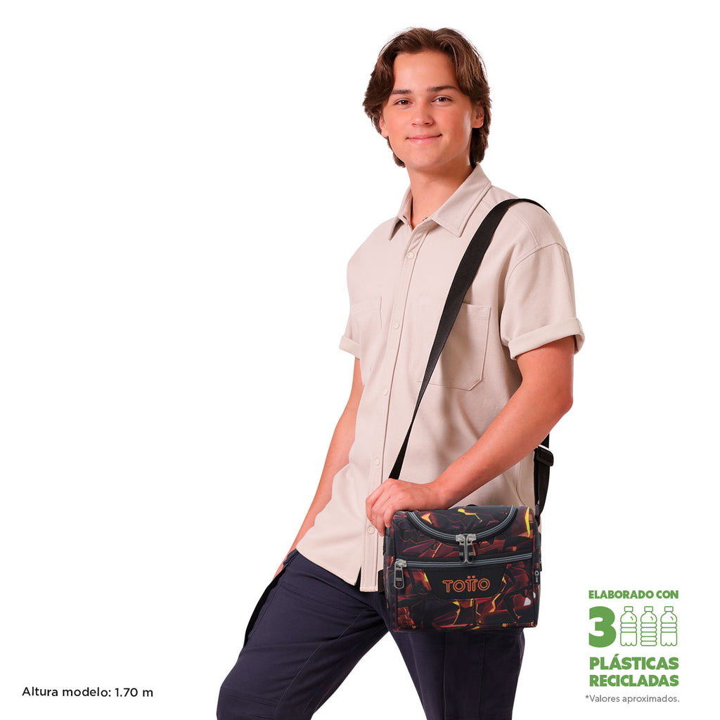 ¡Mejora tu rutina diaria con la lonchera Pizarra! Está diseñada con aislamiento térmico para mantener la temperatura hasta por 5 horas, incluye un bolsillo interno en malla y un bolsillo auxiliar, perfectos para organizar tus pertenencias. Su exterior es repelente a líquidos y fácil de limpiar, ideal para el uso diario. Confeccionada con materiales reciclados y equipada con correas ajustables y pasador para sistema de ruedas.
