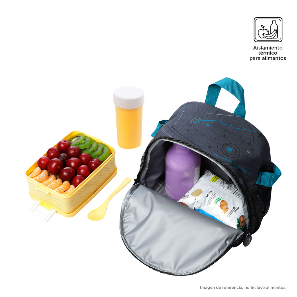 ¡Haz del almuerzo una experiencia más práctica con la lonchera Apolo! Diseñada para niños, esta lonchera es amplia, repelente a líquidos y fácil de limpiar. Cuenta con un compartimento principal con cierre de doble cremallera, bolsillos laterales portabotellas y una banda ajustable para colgar en el hombro o cruzarla. Además, se puede anclar al morral de ruedas para mayor comodidad. ¡Perfecta para el colegio!