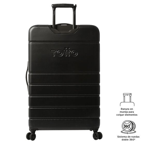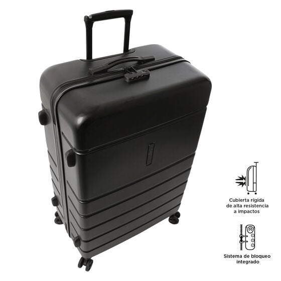 La maleta grande Prop está diseñada para brindarte comodidad y seguridad durante tus viajes. Con un sistema de 4 ruedas giratorias de 360 grados, ofrece un desplazamiento suave y fácil. Su combinación de materiales en policarbonato y ABS la hace resistente a impactos, asegurando una alta durabilidad. El interior está forrado en poliéster y cuenta con una tapa de malla y correas de ajuste para mantener tu equipaje organizado. Además, incluye sistema telescópico ajustable y un candado de 3 dígitos para mayor protección. Ideal para quienes buscan una maleta robusta y funcional.