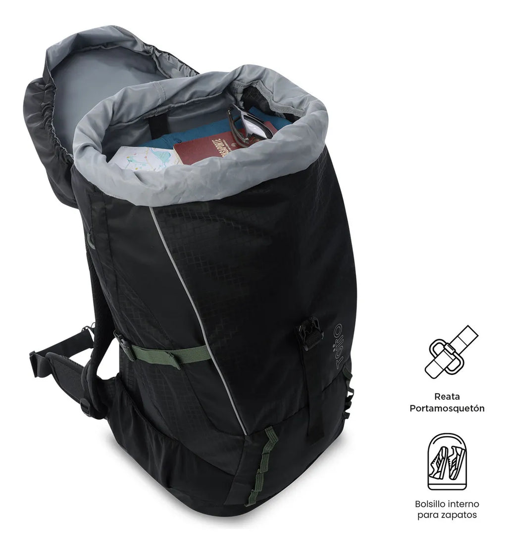 El morral de viaje Summit 50 está hecho en lona liviana resistente a la abrasión, ideal para entornos exigentes. Su espaldar ergonómico, correas de pecho y lumbares optimizan la carga, brindando comodidad en largas caminatas. Con una capacidad de 50 L, es perfecto para llevar todo lo necesario en tus aventuras. Incluye un rain cover para proteger tus pertenencias de la lluvia, mientras que los cinco bolsillos, incluyendo uno para botella, te permiten organizar tus artículos de manera eficiente. Aunque no es impermeable, su diseño reforzado asegura durabilidad. Con un tamaño máximo para portátil de 15", es una opción versátil para el senderismo o camping. Organiza todo y enfréntate al clima sin preocupaciones. ¡Hazlo parte de tu travesía!