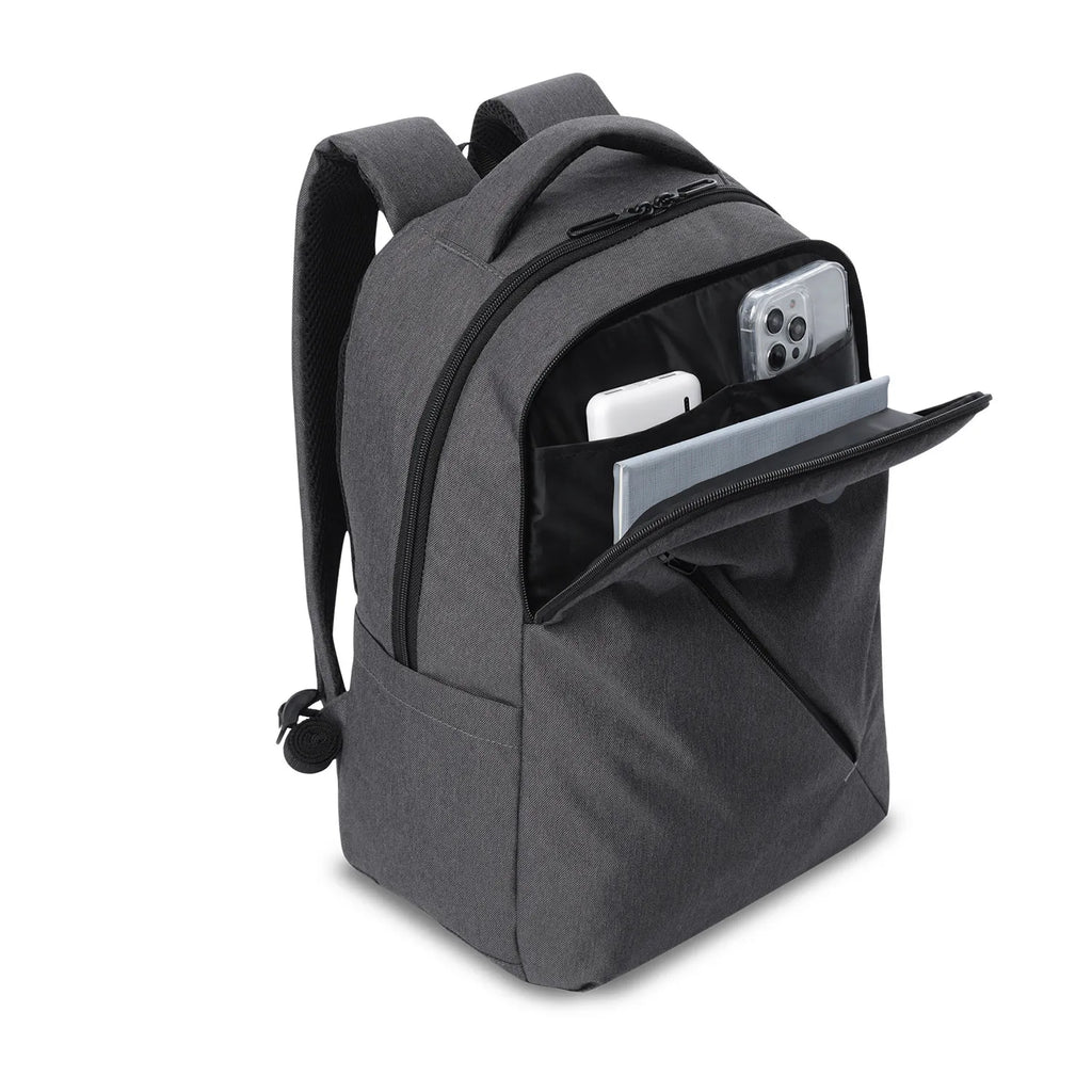 ¡Lleva tu equipo con comodidad y funcionalidad sin esfuerzo! Este morral para oficina incluye compartimiento para portátil de hasta 15.4", bolsillo lateral para botella o sombrilla, espaldar acolchado y pasador para sistema de ruedas. Está elaborado en poliéster con acabado melange resistente a la abrasión, ideal para un día activo. Además, incorpora llavero en goma con logo distintivo. ¡Cárgalo contigo y mantén tu jornada organizada!