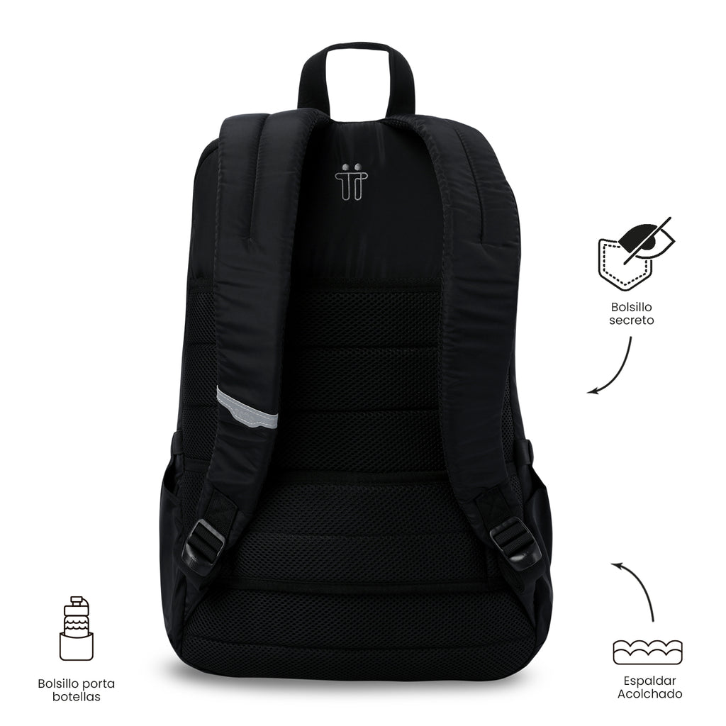 ¡Optimiza cada trayecto! El morral Campus está confeccionado en poliéster liviano y acolchado, lo que lo hace resistente y cómodo para jornadas exigentes. Su interior espacioso incluye compartimiento para laptop de hasta 16 pulgadas, bolsillo secreto, portallaves, espacio para termos, gafas, sombrillas u otros accesorios, organizador con cremallera y pasador para sistema de ruedas. Incluye llavero en goma con logo. ¡Lleva orden sin esfuerzo!