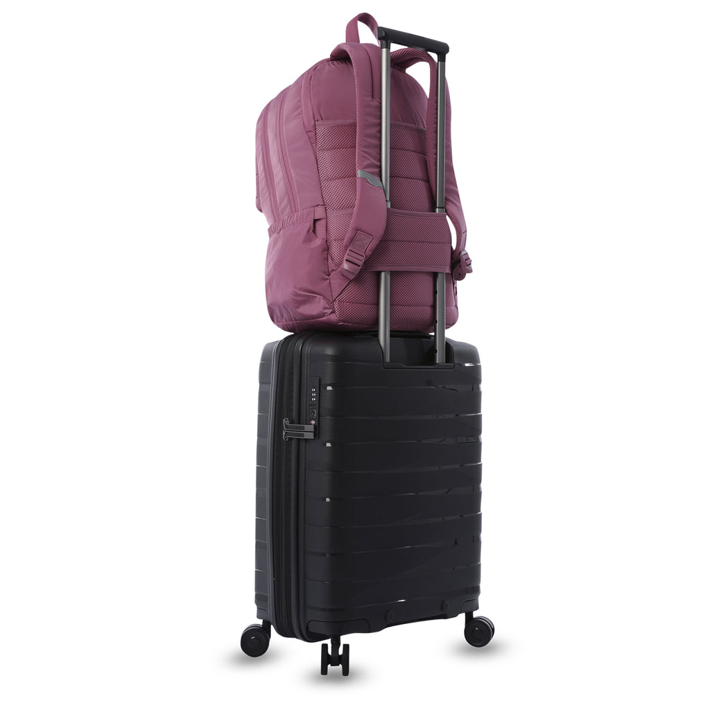 ¡Optimiza cada trayecto! El morral Campus está confeccionado en poliéster liviano y acolchado, lo que lo hace resistente y cómodo para jornadas exigentes. Su interior espacioso incluye compartimiento para laptop de hasta 16 pulgadas, bolsillo secreto, portallaves, espacio para termos, gafas, sombrillas u otros accesorios, organizador con cremallera y pasador para sistema de ruedas. Incluye llavero en goma con logo. ¡Lleva orden sin esfuerzo!