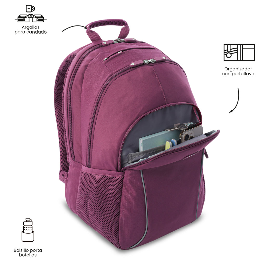 El morral Cambri 2.0 es la opción perfecta para quienes buscan funcionalidad. Este maletín juvenil, fabricado con lona RPET proveniente del reciclaje de 11 botellas de plástico, cuenta con bolsillo para tu portátil de 15.4 pulgadas, compartimento para tableta de 10", bolsillo suave para objetos delicados y bolsillo secreto. Su diseño incluye correas en forma de S, espaldar ergonómico, bolsillo secreto, bolsillo para botellas, reflectivo y organizador portallaves. ¡Hazlo tuyo!