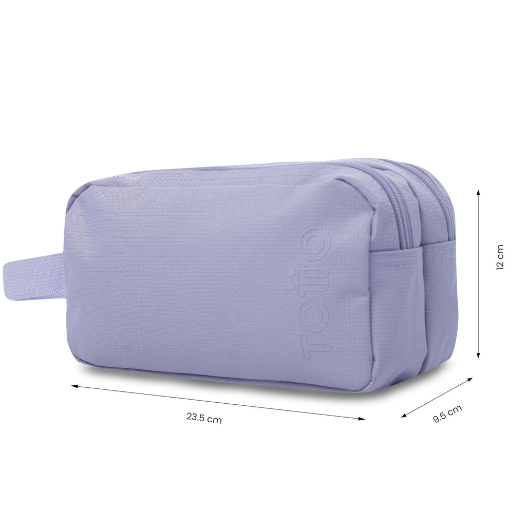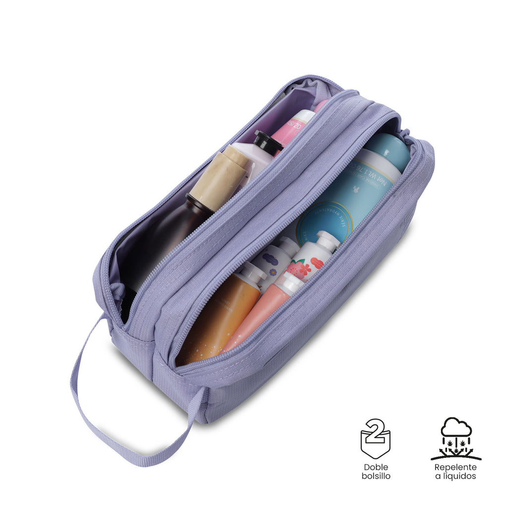 ¡El estuche que siempre quisiste! Amplio, versátil y con todo el espacio para guardar lo que necesitas. Cuenta con doble organizador de cierre en cremallera y puller metálico. Además, manija lateral en correa para que sea fácil de cargar y llevar a todas partes.