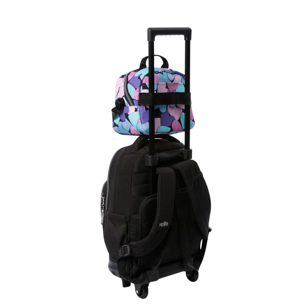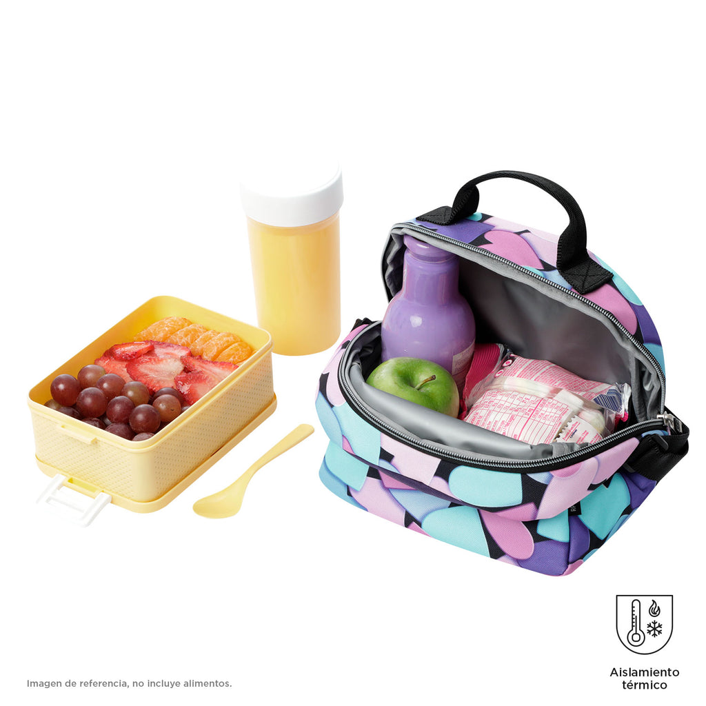 ¡Organiza tu día con la lonchera Borrador! Diseñada con aislamiento térmico para mantener tus alimentos frescos hasta por 5 horas, es repelente a líquidos y fácil de limpiar. Incluye un elástico interno para llevar botellas de forma segura. Además, cuenta con pasador para sistema de ruedas. Elaborada con poliéster y forro de etil vinil acetato, utiliza materiales reciclados, contribuyendo al cuidado del medio ambiente.